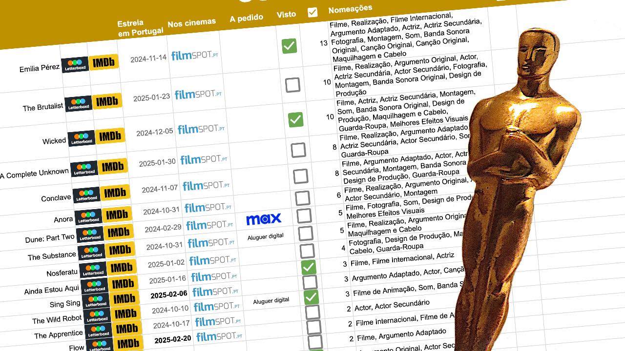 Para quem só chegou agora: há alguns anos que faço uma folha de cálculo para os nomeados aos Óscares e a partilho com quem a quiser usar. Alguns destaques: